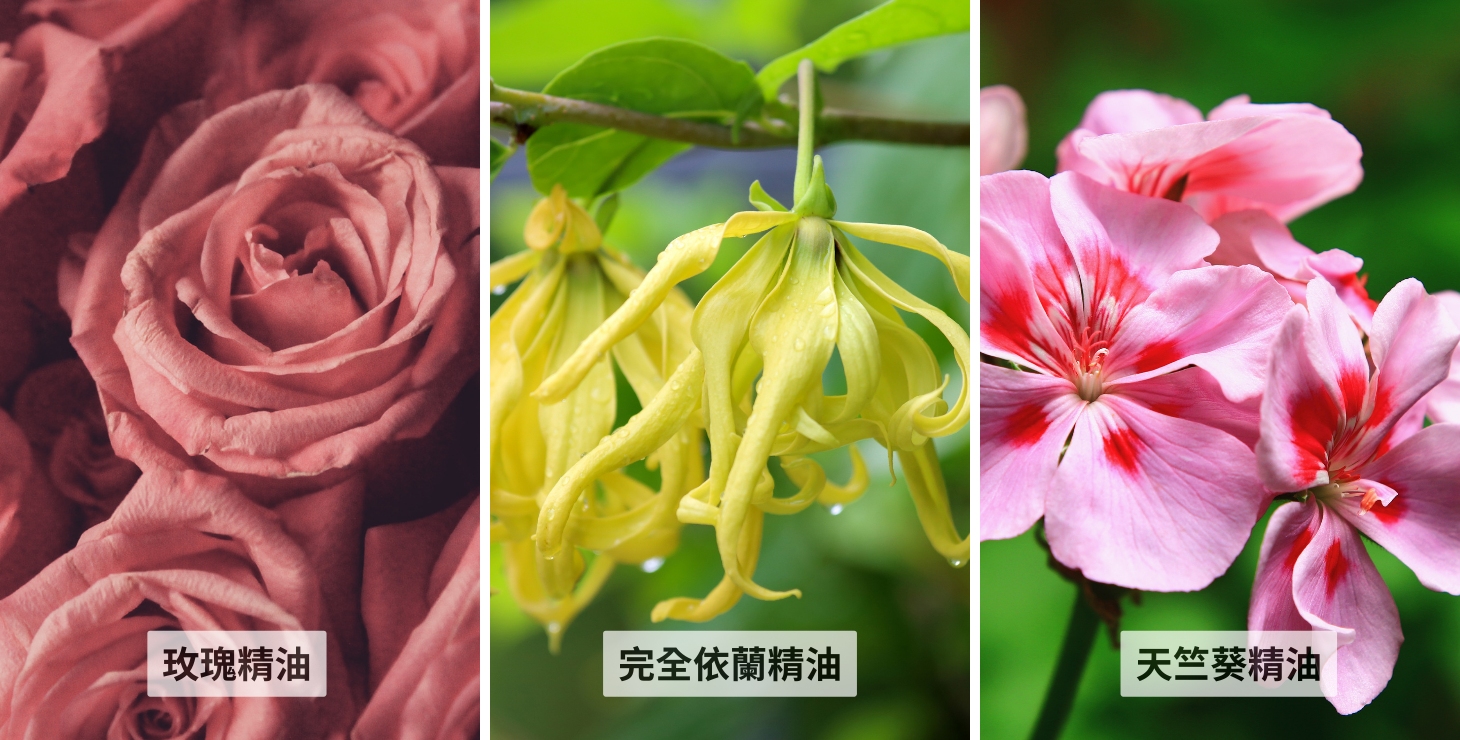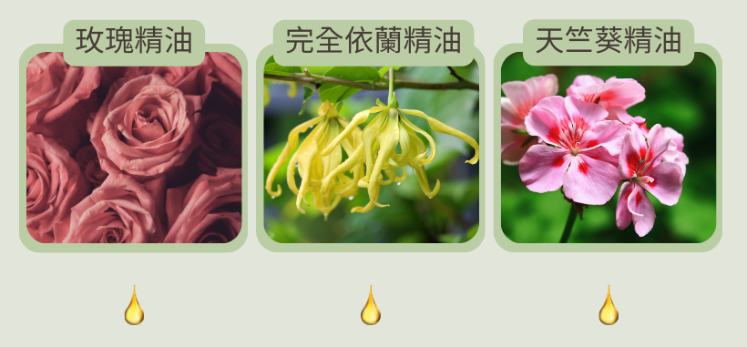 玫瑰( 1滴)+ 完全依蘭 ( 1滴)+天竺葵( 1滴)
